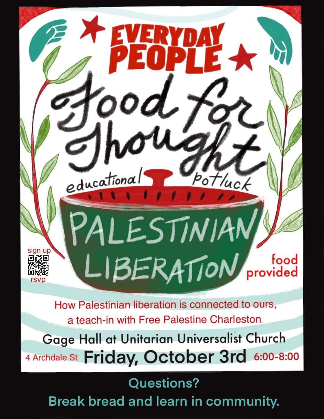 How Palestinian liberation is connected to ours, a teach-in with Free Palestine Charleston.